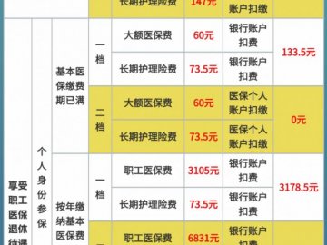 2026年,以个人身份参加职工医保按年度缴费的缴费基数及缴费期内个人账户资金划入基数为62100元(5175元/月)。一档缴费标准为3105元/年·人,二档缴费标准为6831元/年·人。